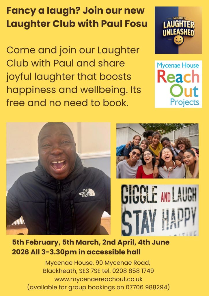 Fancy a laugh? Join our new Laughter Club with Paul Fosu and share joyful laughter that boosts happiness & wellbeing!